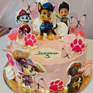 Noformējums ar vertikāli izvietotiem printētiem varoņiem, papildināts ar dizainam pieskaņotām ledenēm, šokolādēm, konfektēm, zefīriem, ogām un augļiem. Cena – 30 EUR, kūkām no 4 kg – 40 EUR
