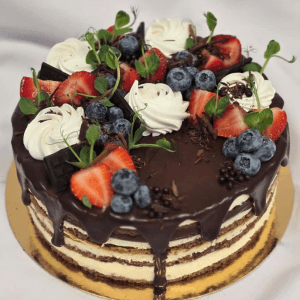 Standarta noformējums ir iekļauts kūkas cenā. Tas nozīmē, ka kūka būs gaumīgi izdekorēta ar sezonas augļiem, ogām un zefīriem. Ja ir vēlme uz kūkas varam izvietot ciparus un vārdiņu, kas ir rakstīts uz cukura mākonīša.